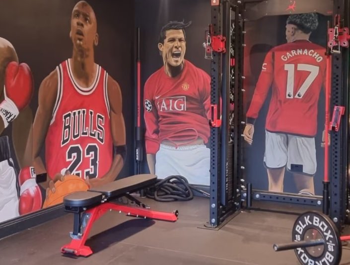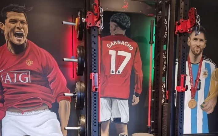 Andrés Garnacho es uno de los pocos jugadores en el mundo que podrá decir en el futuro que jugó con Lionel Messi y Cristiano Ronaldo. El delantero del Manchester United se mandó a armar un propio gimnasio con la imagen del rosarino y tampoco se olvidó del portugués.