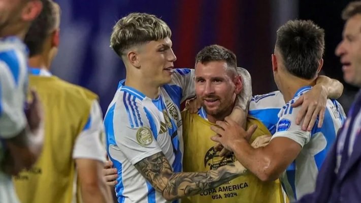 Garnacho, abrazado a Messi: el pibe tiene presente al «10» en su gimnasio.