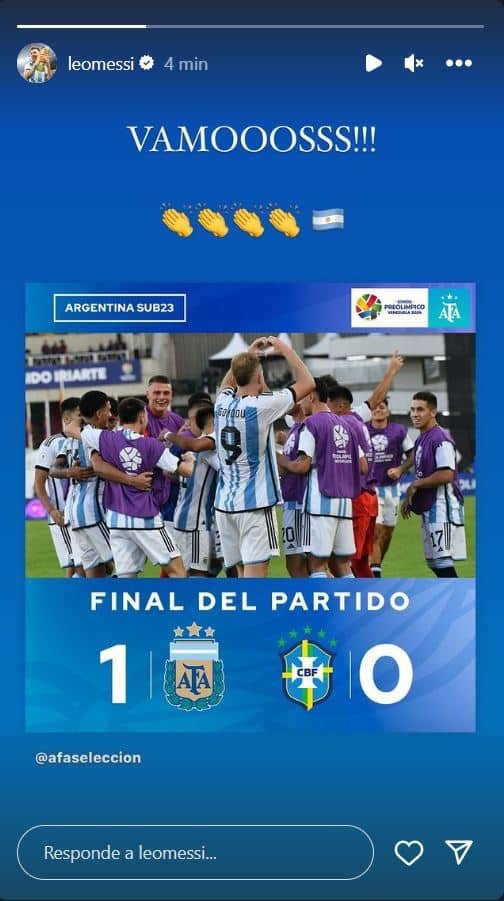 Lionel Messi, en su cuenta de Instagram, felicitó a los pibes de la Sub 23. Un crack con todas las letras.
