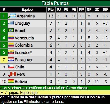 Con este triunfo, Argentina suma 12 puntos de los 12 disputados y le lleva cinco unidades a Uruguay, Brasil y Venezuela, que comparten la segunda posición. Ahora, en la próxima fecha FIFA la Selección jugará los dos clásicos sudamericanos: el jueves 16 de noviembre frente a Uruguay en Argentina (sería en el Estadio Mario Alberto Kempes de Córdoba) y el martes 21 frente a Brasil en el Maracaná.