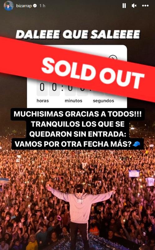 En sus redes sociales, Bizarrap agradeció a sus fans por el sold out: “Muchísimas gracias a todos! Tranquilos los que se quedaron sin entrada: vamos por otra fecha más?”.