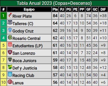 No se trata de una tarea sencilla y tampoco depende exclusivamente de Boca su boleto a la próximo edición de la competencia más importante de Sudamérica. Con River ya clasificado por haber ganado la Liga Profesional 2023, hoy hay tres equipos en zona de Libertadores: Talleres (64 puntos) Godoy Cruz (62) y Rosario Central (62). Detrás, Estudiantes tiene 61 unidades, igual que San Lorenzo y Boca suma 59. Por lo tanto, el equipo de Herrón tendrá que ganarle al Tomba en Mendoza y contar con la suerte de que sus rivales en esta disputa no superen los 62 puntos: Rosario Central visita a Arsenal, Estudiantes recibe a Lanús y San Lorenzo juega como local ante Central Córdoba.