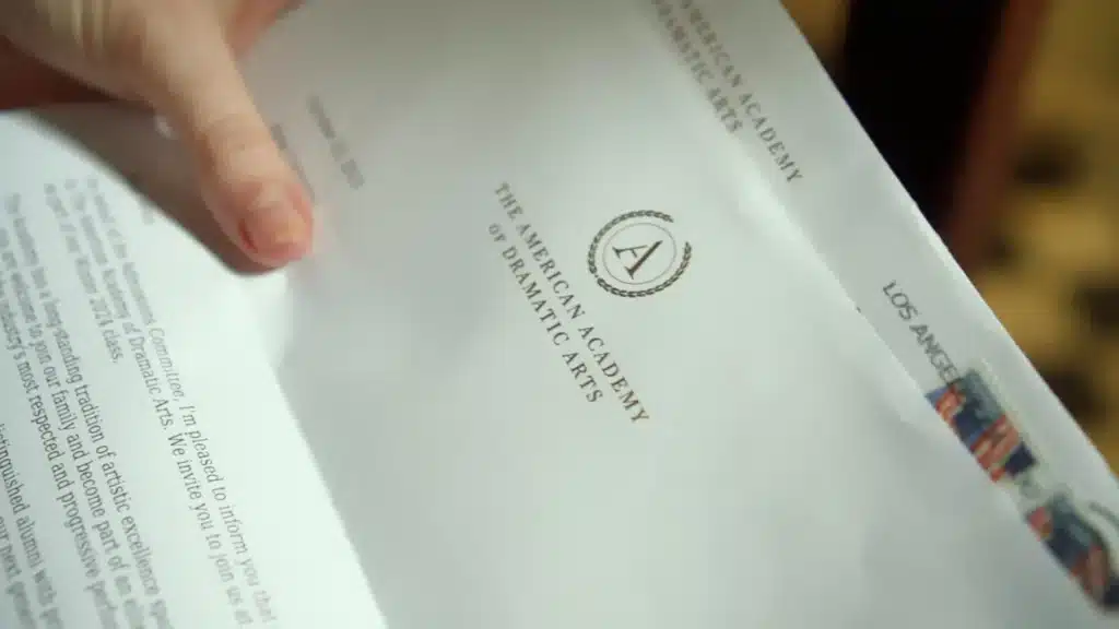 La carta que le envió la prestigiosa American Academy of Dramatic Arts, con una beca del 25%. Sin embargo, carece de los fondos necesarios para cubrir los dos años de estudio.
