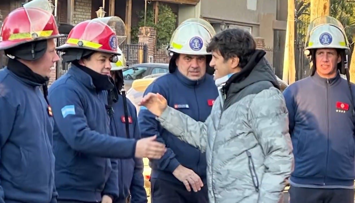 El cantante, junto a los Bomberos Voluntarios, quienes se vieron sorprendidos.