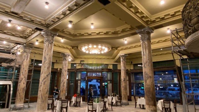 Posteriormente, Angelucci expresó: “En los próximos meses estaríamos en condiciones de poder reabrirla, porque la puesta en valor está prácticamente 100% terminada”. Aunque por el momento resta resolver la concesión, que deberá estar en manos de una empresa privada capaz de llevar adelante la confitería con las características originales. “Nosotros como Comisión Administradora teníamos la obligación de poner el edificio en condiciones de ser concesionado, luego la explotación correrá por cuenta de una empresa privada y el proceso (para otorgarla) nos excede, pero creemos que muy pronto se resolverá”. A su vez, por el momento indicó que “sentarse a tomar un café es un lujo que nos permiten algunas empresas privadas que han querido colaborar, que son las que de forma gratuita ofrecen el servicio de cafetería”.