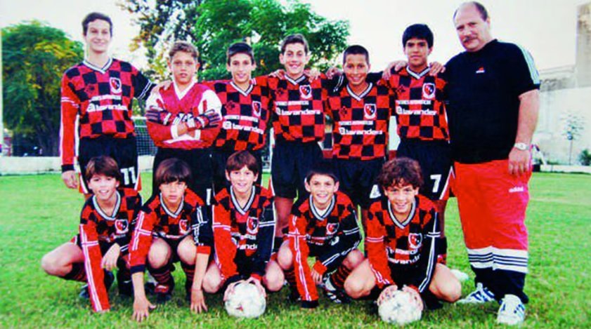 Messi, el tercero desde la izquierda abajo, y con la pelota encima y la casaca de La Lepra.