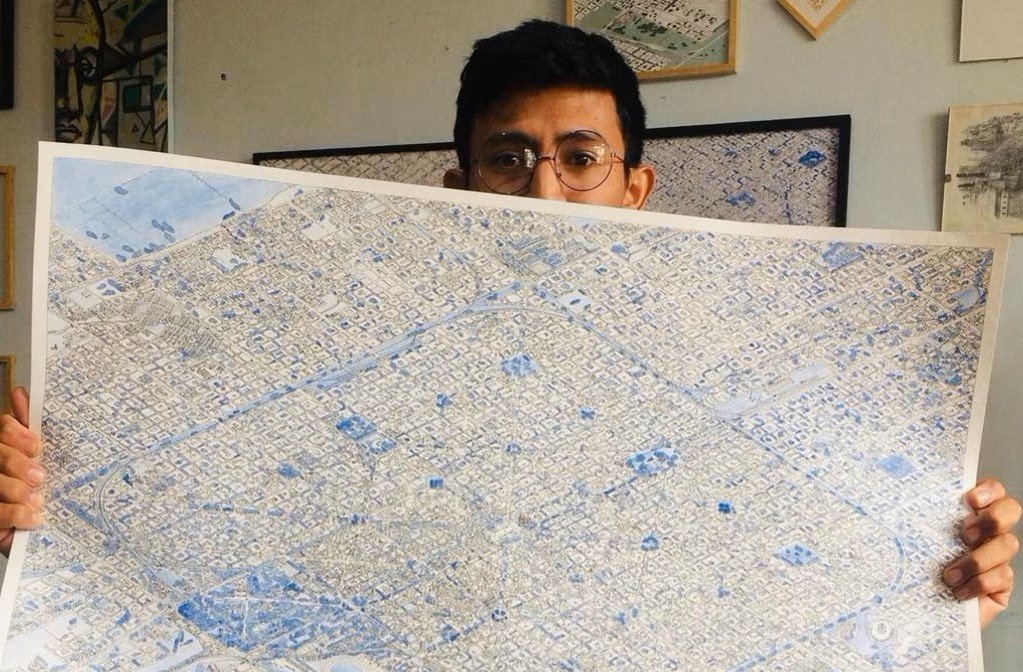 Lo que empezó como un hobby para mantenerse entretenido durante el aislamiento por la pandemia de Covid-19, en en 2020, terminó convrtiéndose en un trabajo profesional para Abraham Gómez, un joven peruano amante del urbanismo y estudiante arquitectura que se mudó a la Argentina en 2013 para iniciar su carrera en la Universidad Nacional de La Plata. Sus espectaculares dibujos de ciudades hechos a mano no tardaron en viralizarse y le cambiaron la vida a este talentoso artista que se destaca por ilustrar mapas en miniatura con una precisión sensacional. «Me considero un autodidacta, ya que no tuve formación artística ni técnica. En la adolescencia me incliné por el puntillismo y luego fui incorporando otras técnicas», explica el artista.