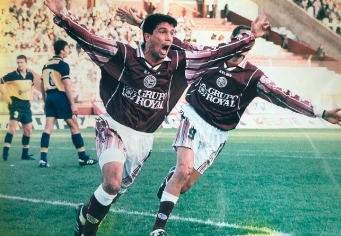 Di Alessio, festejando un gol ante Boca en «La Fortaleza».