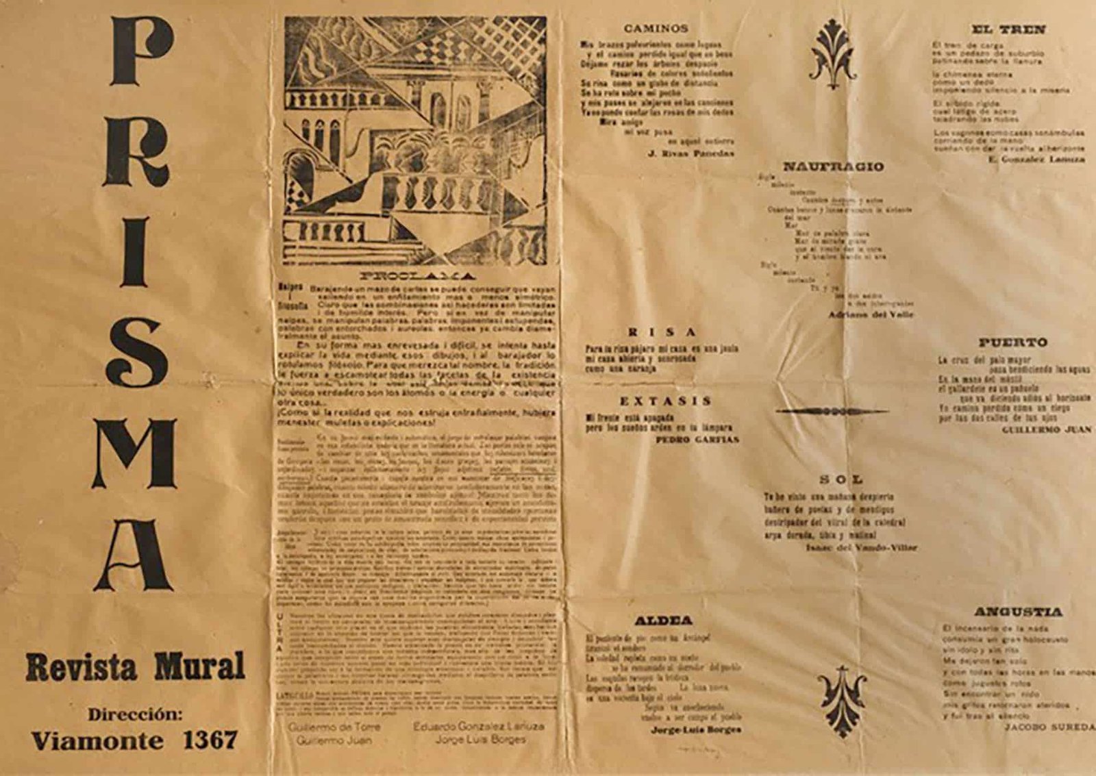 Año 1921. Buenos Aires está empapelada con algo raro, casi poesía callejera: “Prisma”, el periódico mural que pegaron unos jóvenes culo inquietos. Entre ellos, un tal Jorge Luis Borges. Recién llegaba al país. Ya tocaba las paredes con textos breves, ilustraciones, panfletos. No había guita para revista, dijo alguna vez. Así que salieron con lo puesto. Con tinta y con intención: inventarse un público, hacerse leer.