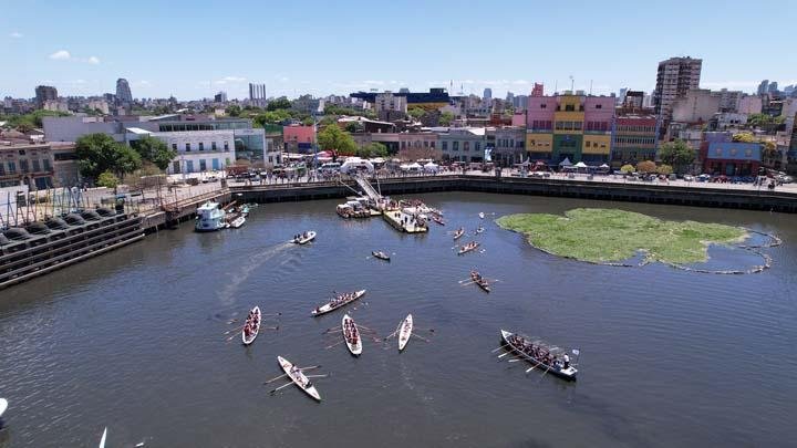 “Desde 2008 formamos parte de las remadas que se organizan en el Riachuelo y desde 2013 lo hacemos con botes propios. Nuestros remeros empezaron a participar de las regatas con ocho botes en total: cinco doble par con timonel y tres de par con timonel, más dos botes bateas de entrenamiento para chicos. Era lógico que quisiésemos tener una fecha en la zona”, contó Roberto Naone, vecino de La Boca, a la Agencia Télam.