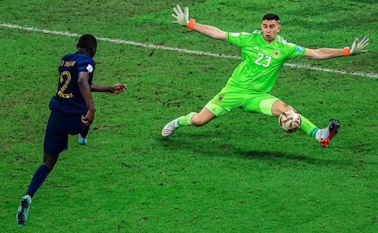 El mural está basado en la atajada del Dibu ante Kolo Muani en la final de la Copa del Mundo de Qatar 2022.