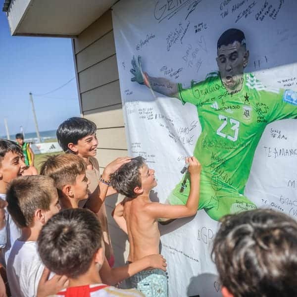 Por este motivo, en las últimas semanas le estuvieron realizando un homenaje a Emiliano Martínez en Pinamar con el objetivo de que le llegue personalmente próximamente. Se trata de un mural que está ubicado en Avenida del Mar y Trirremes para que los turistas se acerquen, lo disfruten y lo firmen.