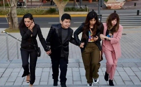 Las hijas de Diego, junto a su hijo Dieguito Fernando, en el Mausoleo.