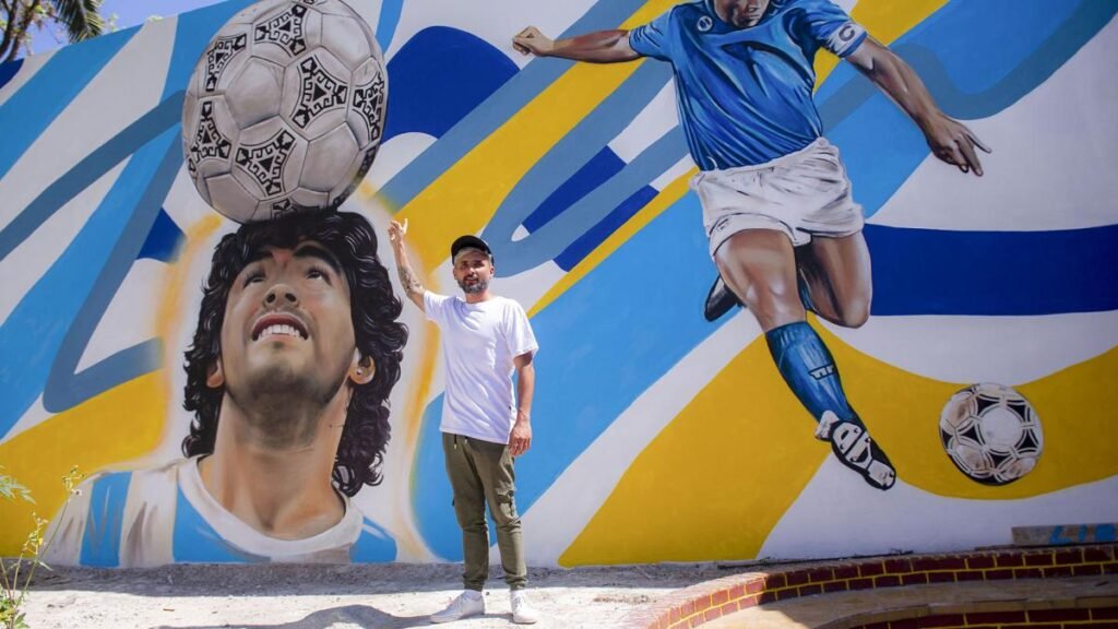 Diego Maradona sigue presente en cada uno de los argentinos y las demostraciones de amor eterno para el futbolista que le regaló felicidad a todo el país con la magia de su zurda se multiplican como él lo hacía con sus lujos cada vez que tenía una pelota en sus pies, o en cualquier parte de su cuerpo. De hecho, este 10 del 10 se presentó un nuevo tributo a Diego en su antigua casa de Villa Devoto: «Maradona como el D10s que cuida su templo», titularon la obra los autores del gigante y espectacular mural que pintaron en el patio del viejo hogar de Pelusa.