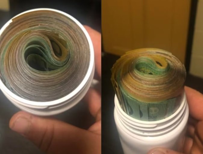 Lo primero que le llamó la atención fue que tenía un peso poco común, lo que parecía indicar que aún guardaba cosas adentro. Al abrirlo, descubrió que en el interior había un fajo de billetes enrollado. En total, la suma superaba los 7000 dólares australianos, lo que equivale a aproximadamente a 4365 dólares estadounidenses.