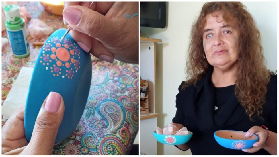 Estuvo ciega y hoy pinta lámparas de sal con la técnica del puntillismo