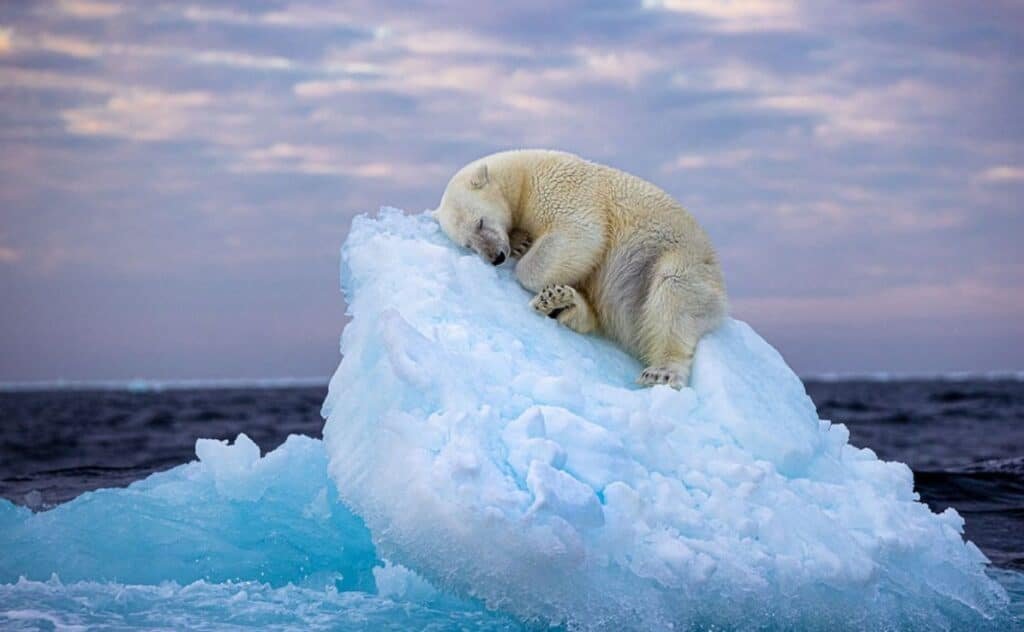 ‘Ice Bed’ (Cama de Hielo), la evocadora imagen de Nima Sarikhani de un joven oso polar quedándose dormido en un iceberg, resultó la ganadora del Premio People’s Choice de Fotógrafo de Vida Silvestre del Año.