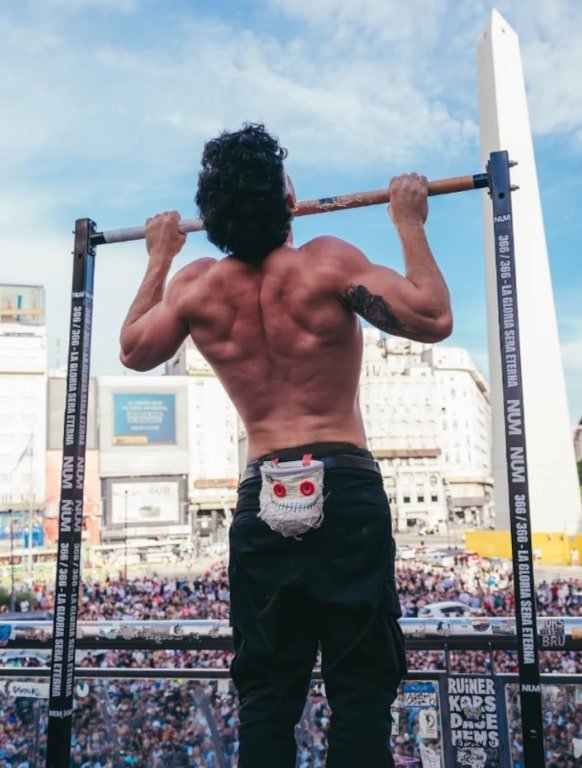 El creador de contenido, Gero Arias, se hizo conocido por grabar videos donde aparece realizando ejercicio en lugares exóticos. Para el fin de año, su gran desafío fue superar las 365 dominadas y lo logró ante una multitud en el Obelisco. Para este año, anunció un nuevo plan.