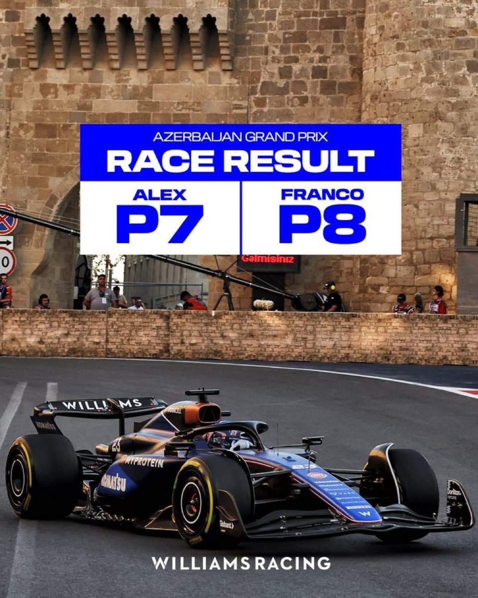 Bajo esa órbita, Colapinto terminó en un histórico octavo puesto, beneficiado por un choque en el cierre de la carrera que sacó tanto a Carlos Sainz como a Sergio Pérez. De esta manera, el argentino culminó la competición en zona de puntos.