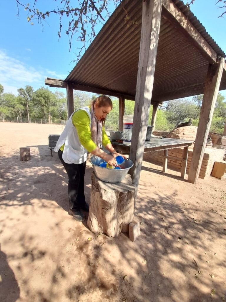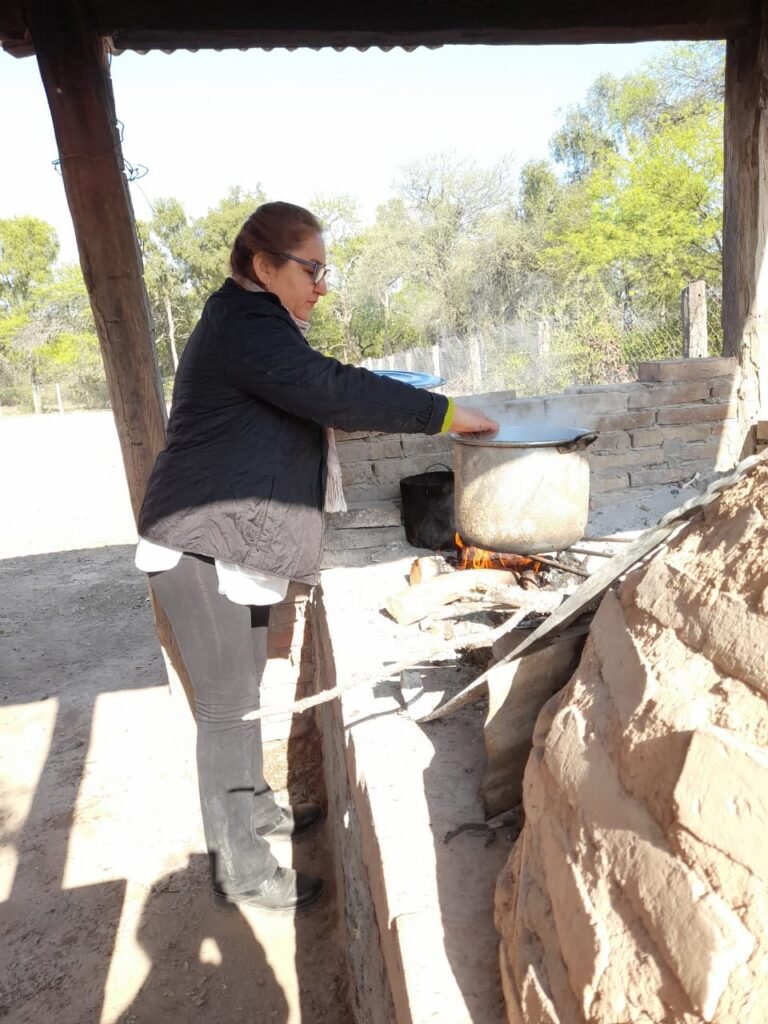 Cocinar, otra de las tareas con las que cumple día a día la maestra en su escuela.