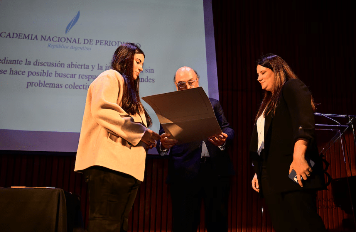 «Estamos muy orgullosas de recibir este diploma en nombre de nuestro papá», indicó Bárbara, una de las hijas del periodista. «Estar acá es una forma de seguir acompañándolo con lo que fue su trabajo, que era el gran motor de su vida», profundizó Lola.