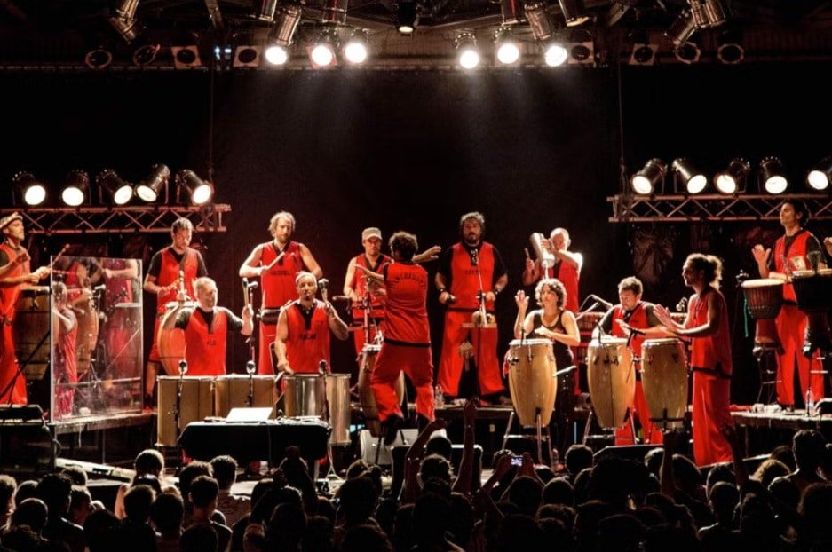 María Bergamaschi (tumbadora y chekeré), Nacho Alvarez (tambor repique y tumbadora), Mariano  Cantero (tambor chico), Lucas Helguero (quinto, accesorios y dirección), Juampi Francisconi (tambor piano, chekeré, dum dum y dirección), Mario Gusso (conga y campana), Andy Inchausti (surdo, djembé y dirección), Alejandro Oliva (surdo, conga y dirección), Richard Nant (surdo, trompeta y dirección), Gabriel Spiller (campanas, tronco y dirección), Pablo Palleiro (tumbadora y tambor repique), Luciano Larocca (guira y djembé), Diego Sánchez (djembé, quinto y dirección) y Carto Brandán (semillas y surdo).