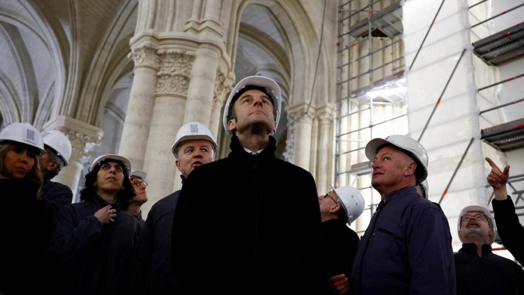 El presidente Emmanuel Macron prometió que las obras en el monumento finalizarían a tiempo para la fecha de reapertura de diciembre de 2024.
