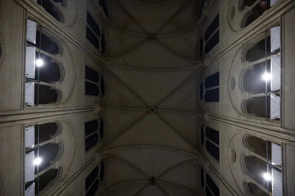 La emblemática iglesia perdió en el incendio del 2019 la aguja característica de su fachada. Sigue en plena reconstrucción.