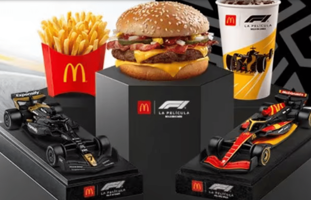 La cadena Mc Donald’s es uno de los principales patrocinantes en la Fórmula 1. Y como se venía adelantando, la megaempresa dedicará varias de sus líneas a la principal categoría de automovilismo en sus locales de Latinoamérica, en torno a la película protagonizada por Brad Pitt que se estrenará a fines de junio.