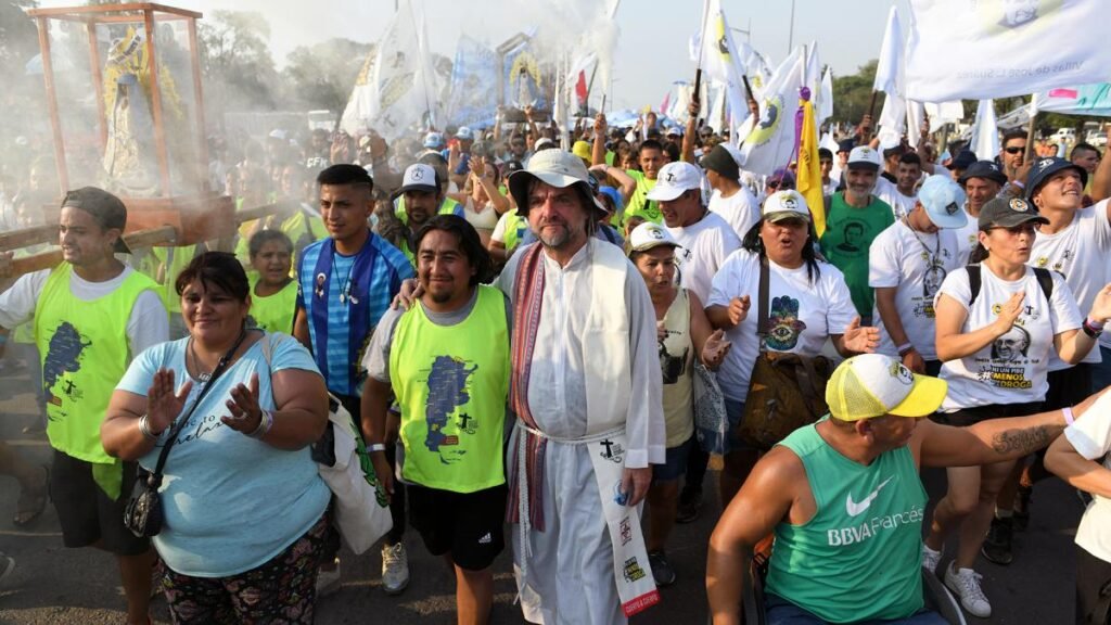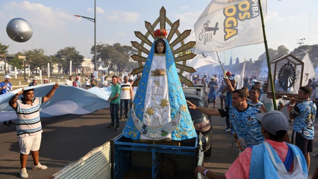 La basílica de Luján celebró este domingo los 10 años de pontificado de Francisco, que se cumplen este lunes, ante una multitud de fieles que se acercó. En un emotivo encuentro, la iglesia llamó a “buscar la paz social en el país» y a “dejar de lado las grietas que nos separan”.