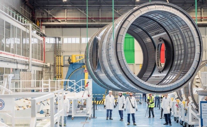 Los ingenieros analizan la estructura que será la base de la Estación Espacial.