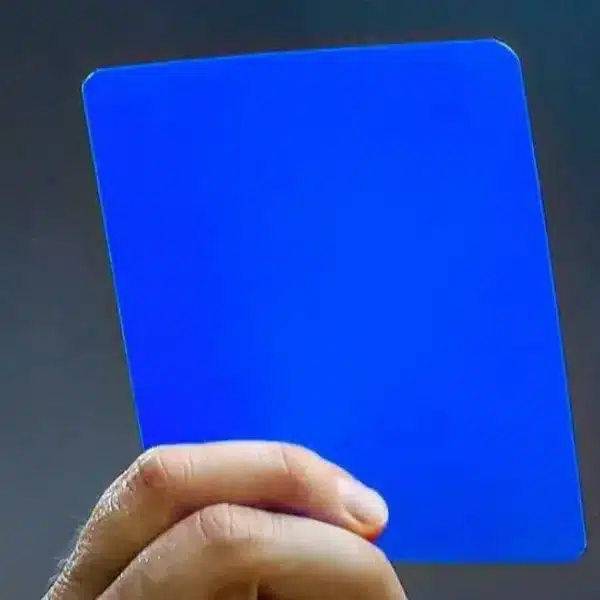 La tarjeta azul se utilizaría para sancionar expulsiones de 10 minutos, especialmente por faltas tácticas o por mostrar falta de respeto hacia el árbitro. Así, esta sanción representaría un paso intermedio entre la amonestación con tarjeta amarilla y la expulsión definitiva con tarjeta roja, el actual sistema disciplinario que se implementó en el fútbol a partir la Copa Mundial de la FIFA de México 1970, competancia en la Brasil obtuvo su tercer título y se quedó con el legendario trofeo Jules Rimet.