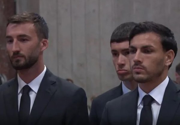 Los futbolistas fueron divisados en la transmisión oficial, frente al féretro de Jorge Bergoglio, quien falleció el pasado lunes a los 88 años. Los deportistas mostraron respeto y en el final se emocionaron.