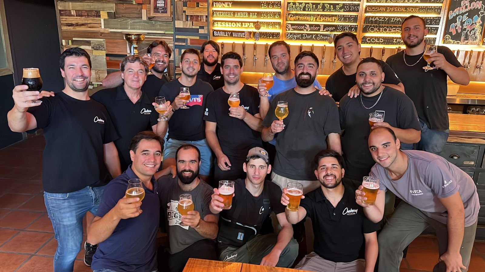 Parte del plantel en uno de los bares de la cadena de cervecerías.