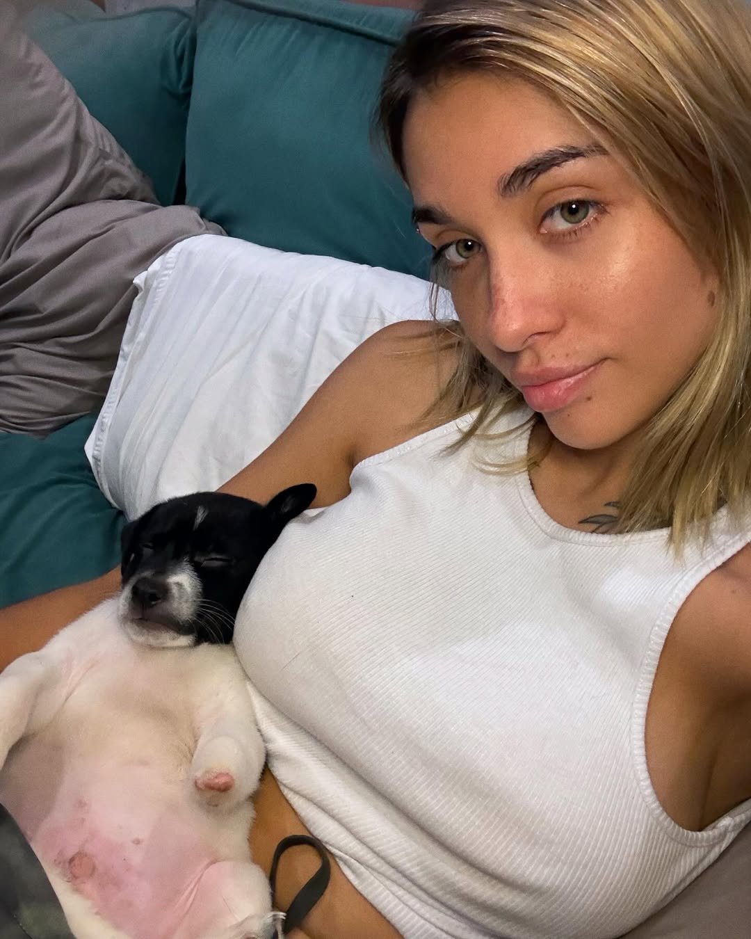 María Becerra con «Pistón», su nuevo hijo perruno. «Adopten, no compren», pidió La Nena de Argentina.