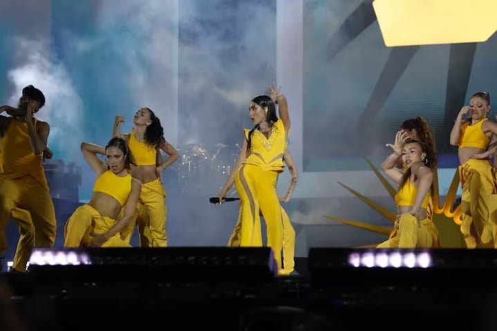 Becerra desplegó todo su potencial en el escenario y fue ovacionada ante 85.000 almas.
