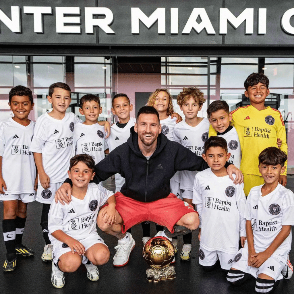 Lionel Messi compartió su octavo Balón de Oro junto a los chicos de la Academia del Inter de Miami, donde juegan sus hijos Thiago y Mateo.