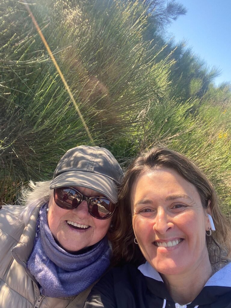 Esta semana, luego de dejar los chicos en el cole, tenía poco más de una hora para caminar un rato, y como me propuse recomenzar de a poco la actividad física después del virus que afectó mi capacidad pulmonar, salí camino a la sierra. A la vuelta venía ensimismada en mi mundo, subiendo una historia para Buceadora de Emociones, de casualidad levanto la mirada y ahí la veo. Nuevamente podría haberme hecho la tonta (pues claramente ella nunca me vio mientras caminaba), podría haber seguido en mi mundo virtual del celular que está siempre a mano y dispuesto a robar mi atención y mi momento presente, sobre todo en ese instante, que estaba apurada por volver a casa a darme una ducha y comenzar las consultas del día. Sin embargo me detuve. La saludé “¡Hola, Margarita! Soy Alejandra”. Se frena, iba de ropa deportiva, bastones de trekking, una gorra y lentes de sol. Debe rondar los ochenta, y camina diariamente. Levanta la mirada, con una ilusión inexplicable en su sonrisa me dice: “Ah, qué lindo que me hayas parado, es que ya no recordaba tu rostro”. La abracé, le agradecí sus palabras (me conmueve en este momento recordar la dulzura de sus palabras y lo hondo que calaron en mi corazón). Le pedí que nos tomáramos una foto.