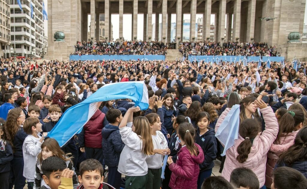 “Que todos ustedes vengan a prometer, implica asumir un compromiso. A mis espaldas está probablemente una de las frases más lindas que refleja el legado de Belgrano: ‘procurar hacerse digno de ser llamados hijos de la patria’. Y eso es lo que hacen ustedes cuando dentro de un ratito prometan a la bandera. Seguramente, a partir de esa promesa, harán las cosas mucho mejor de las que pudimos hacer nosotros, porque ese compromiso con la bandera nace hoy y es para siempre”, sostuvo el intendente rosarino Pablo Javkin a la multitud de niños y niñas..