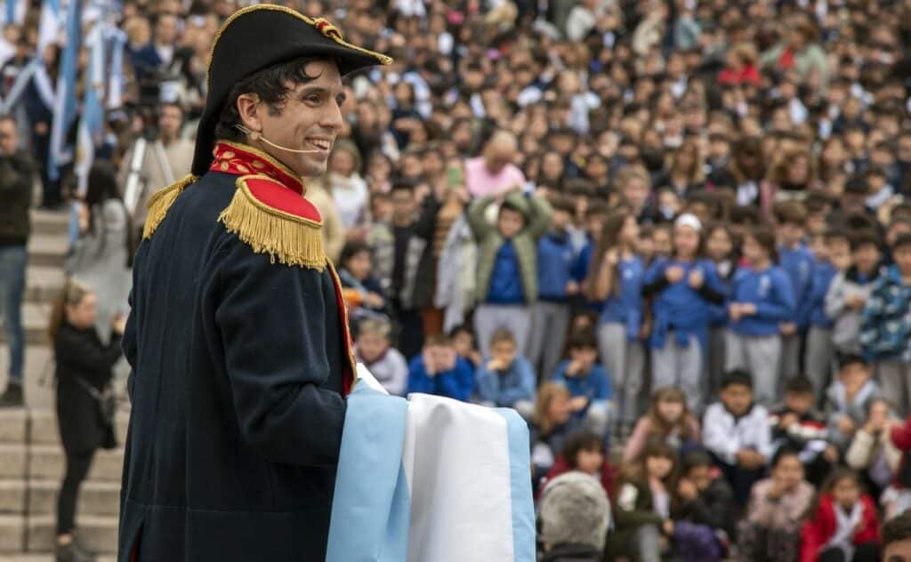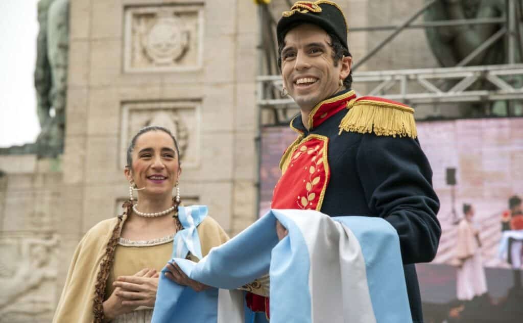 En el acto se resaltó, además, el rol de María Catalina Echeverría —también presente en la celebración bajo la interpretación de la actriz María Victoria Franchi— la rosarina que confeccionó la bandera.