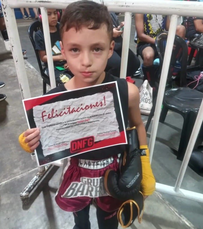 “Le agarró curiosidad por el entrenamiento de kickboxing, así que lo llevamos a entrenar y terminó en varios eventos y peleas”, contó su papá, Carlos.  De hecho, el pequeño desembarcó en el gimnasio PTG de Luis Guillón, donde sigue hasta la actualidad.