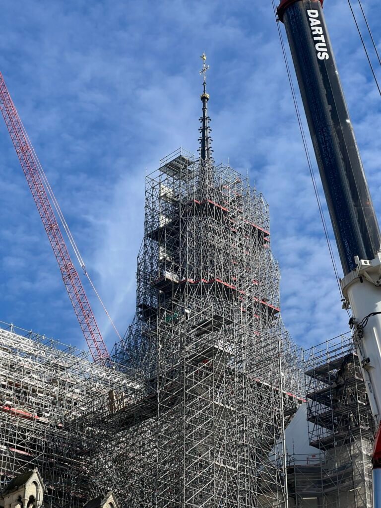 Buena parte de la catedral sigue rodeada de andamios, y desmontarlos puede tomar semanas, incluso meses. La aguja estaba protegida por 70.000 piezas de andamiaje que pesaban la friolera de 600 toneladas. Como símbolo de resistencia y renovación, un nuevo gallo de oro, como un ave fénix con alas en llamas, fue instalado en lo alto de la aguja en diciembre para indicar el resurgimiento de la catedral de sus cenizas.