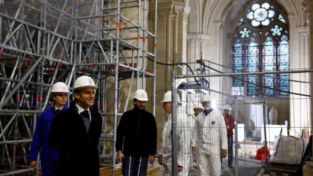 Emmanuel Macron, presidente de Francia, visitó las obras de reconstrucción de la catedral en diciembre pasado.