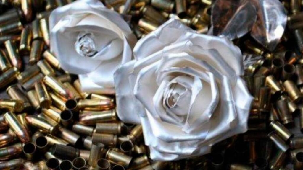 “La idea surgió cuando hice el bastón presidencial que le entregué en persona a Raúl Alfonsín en 1983, en el que coloqué 24 flores de cardo, una por cada provincia argentina y, como homenaje a las Islas del Atlántico Sur, le hice tres pimpollos, esperando que esas islas se transformen en el país de forma natural, como cuando nace una flor. La rosa es el símbolo del amor humano, porque tiene toda la fragancia, los colores y la belleza, pero también tiene espinas, que te lastiman”, destacó el reconocido orfebre que tiene su taller en el barrio de San Telmo. En esta oportunidad, Pallarols fundió casquillos de balas de Ucrania, Rusia, Israel y Palestina, haciendo un desesperado llamado a la Paz Mundial.