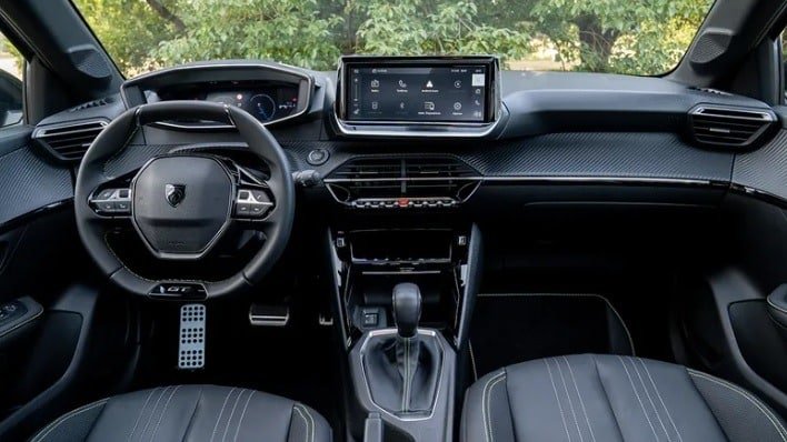 En su interior, presenta cambios en la estructura del i-cockpit, su conocida y disruptiva posición de manejo. Su volante es ajustable en altura y profundidad. Sigue ofreciendo la pantalla táctil de 10 pulgadas con conectividad inalámbrica compatible con CarPlay, Android Auto y Bluetooth.