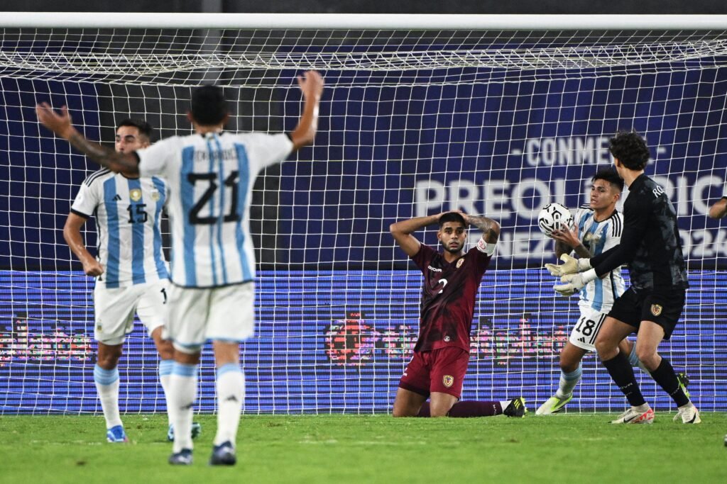 Comenzó el cuadrangular final en Caracas y cada vez el nivel de dificultad es más alto de cara a la clasificación a los Juegos Olímpicos de París 2024. En el primer partido de esta ronda que dará dos pasajes al certamen internacional, la Selección Argentina no pudo empezar con el pie derecho: en un encuentro durísimo, los de Mascherano le ganaban con lo justo al local Venezuela, pero un penal, a instancias del VAR, sobre el final igualó el encuentro: goles de Vivas (e/c) y Almada para Argentina; Brey (e/c) y Kevin Kesly desde los doce pasos los de la Vinotinto. De esta manera, la Albiceleste deberá salir a ganar o ganar en la próxima fecha ante Paraguay, quien dio la sorpresa en el primer turno al superar a Brasil por 1 a 0.