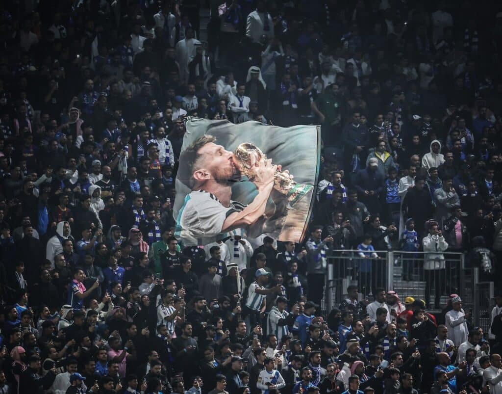 Los hinchas presentes en el Kingston Arena de Riad ovacionaron a Messi y demostraron su admiración con banderas y cantitos.