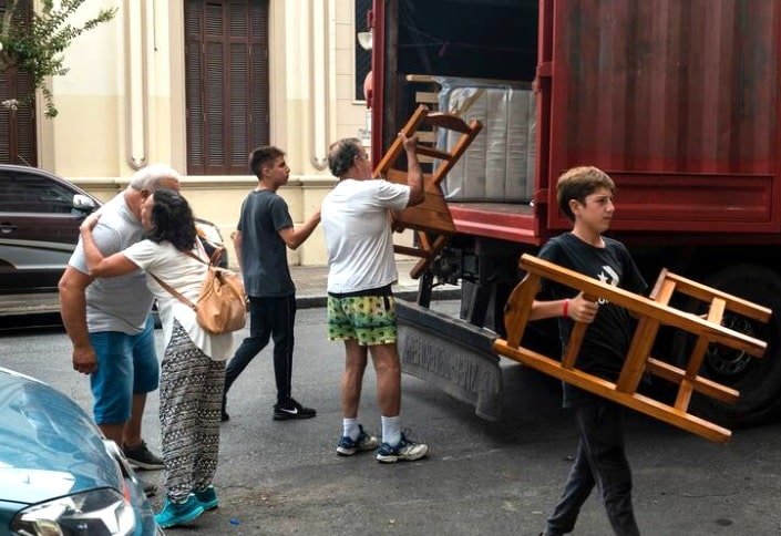 Los familiares agradecen al camionero solidario en cada mudanza. Foto: La Nación.