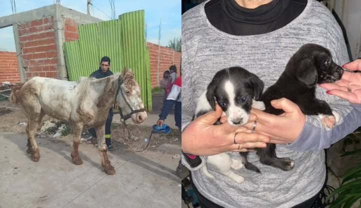 El caballo ya fue puesto al cuidado de proteccionistas y los perritos regresaron a su hogar tras las atenciones.