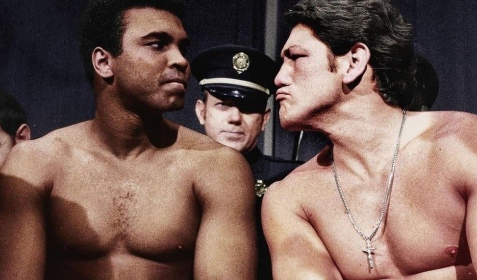 Una de sus postales clásicas. Acá, en la previa ante Muhammad Alí.